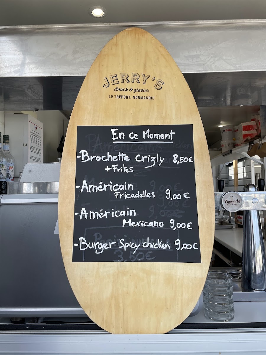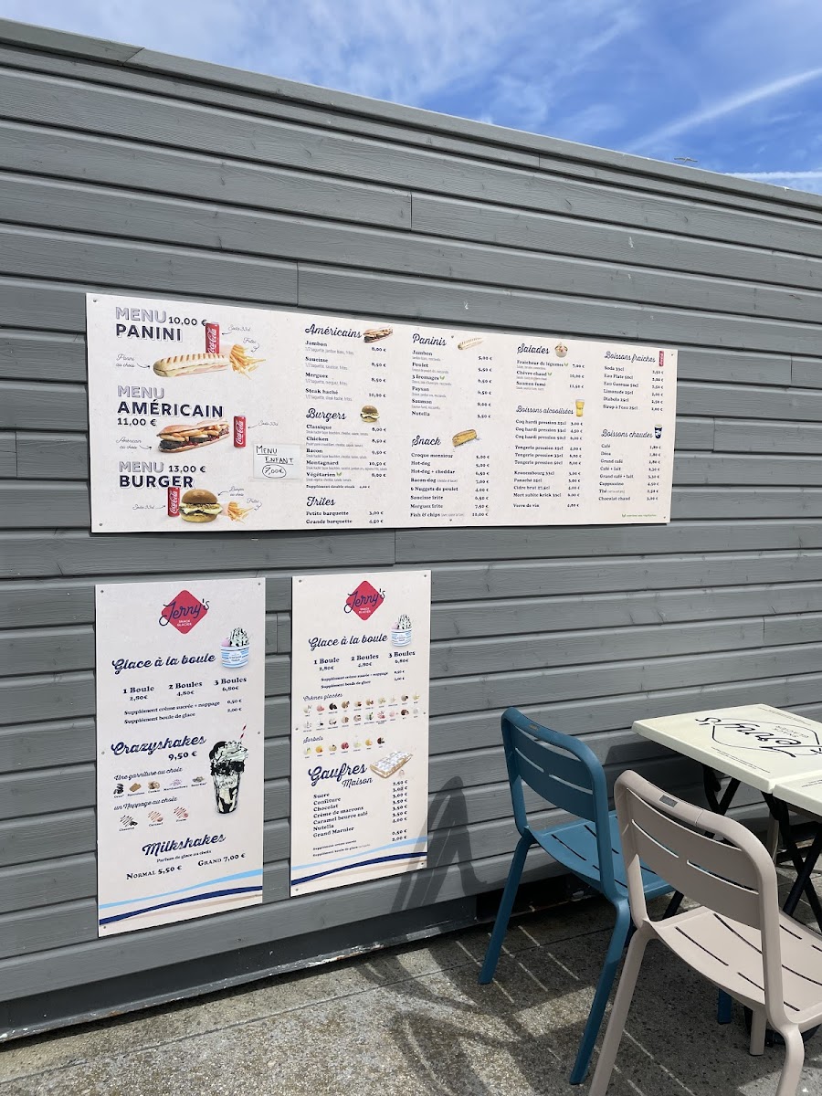 Jerry's, nestled along the scenic seafront of Le Tréport, France, offers a vibrant fusion of fast food, bar delights, and ice cream treats. Their menu highlights classic comfort foods crafted with care: the Menu Burger features a choice burger, crispy fries, and a refreshing 33cl soda for €13. For those craving rich flavors, the Américain menu presents options like saucisse, merguez, or steak haché paired with a soda at €11. Paninis are equally inviting, from the three-cheese blend (mozzarella, bleu, chèvre) to smoked salmon, with prices starting at €5.00. Diners rave about the authentic homemade burgers; perfectly toasted buns, juicy patties, and golden Belgian-style fries offer truly satisfying bites. Beyond savory, Jerry's sweet offerings—delicious ice creams and waffles—add a refreshing finish. Whether unwinding after a bike ride or soaking in the sea views, Jerry’s warm service and quality dishes make it a must-visit spot.